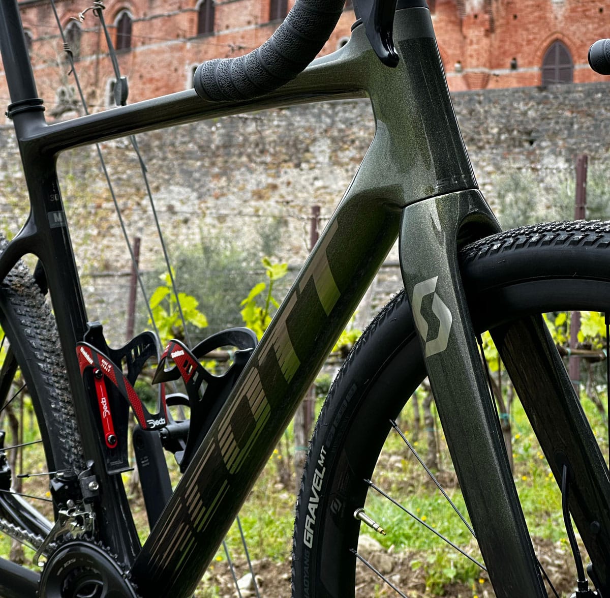 Our choice of bicycles – full carbon even for use on gravel – is oriented towards the best possible quality. In particular, our Scott Addicts are as versatile as you could ever hope for. Fast and light on asphalt, comfortable and easy to ride on gravel.